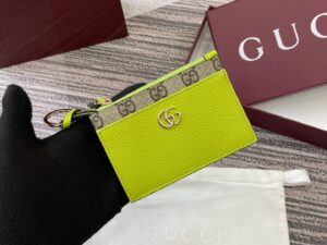 【配全套专柜包装】‼️这款GG Marmont系列卡包采用经典耐看的米色配浅绿牛皮革制作,为《Aria-时尚咏叹调》系列再添经典之作。双G配件源于70年代的腰带扣设计,在这款钱包上采用同色调树脂材质焕新演绎。经典设计与单色调配色相结合,突显现代时尚风范。