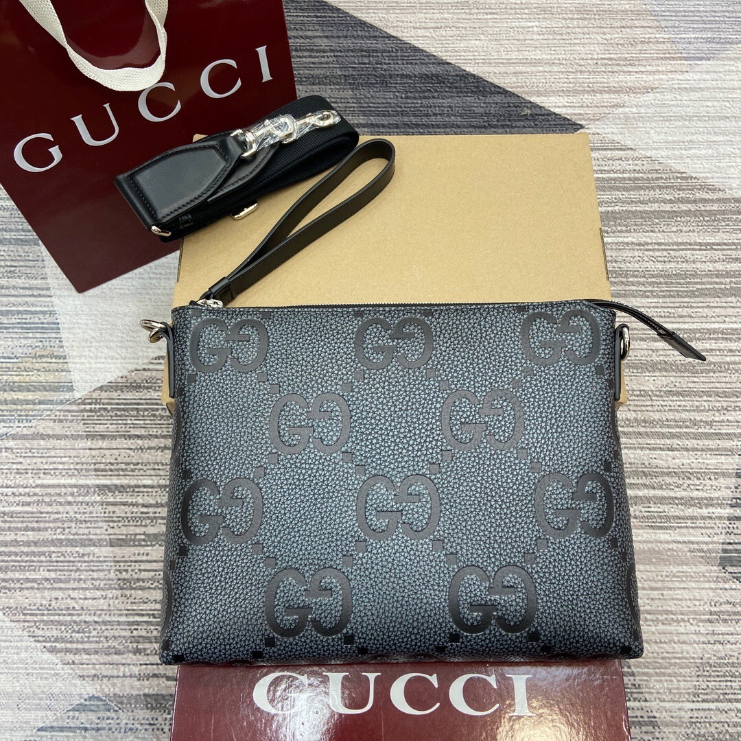【配全套专柜包装】‼️2025早春系列延续超级双G设计,匠心融蕴全新粒面纹理。作为对Guccio Gucci先生姓名首字母的焕新演绎,双G图案以超大尺寸瞩目呈现,营造经久不衰的品牌标识魅力。这款灰色和黑色邮差包以经典牛皮革匠心打造,配有一个拉链内袋和一根多功能肩带。