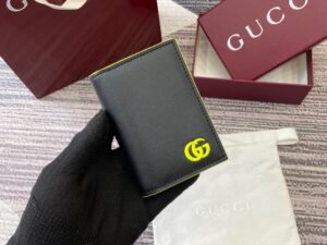 【配全套专柜包装】‼️GG Emblem系列以创意设计和创新功能焕新诠释经典图案,匠心缔造未来数年的珍藏之选。这款卡片夹以黑色亮面皮革匠心打造,内部巧妙融入全新GG字母交织图案织物,焕新演绎全新配饰系列。正面精心搭配Gucci压花,内设多个隔层。