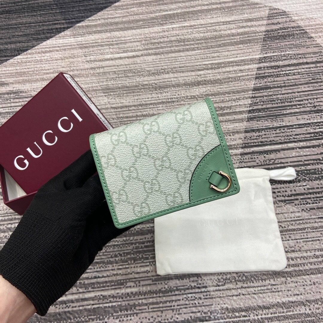 【配全套专柜包装】‼️GG Emblem系列焕新诠释品牌的隽永优雅风范和精湛工艺。这款灰绿色迷你钱包以GG Monogram涂层织物匠心打造。精心配设多个隔层,巧妙融入实用按扣开合。