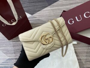【配全套专柜包装】‼️这款GG Marmont系列链式钱包以绗缝牛皮革匠心打造。该系列标志性双G配件令整个设计愈发丰满。