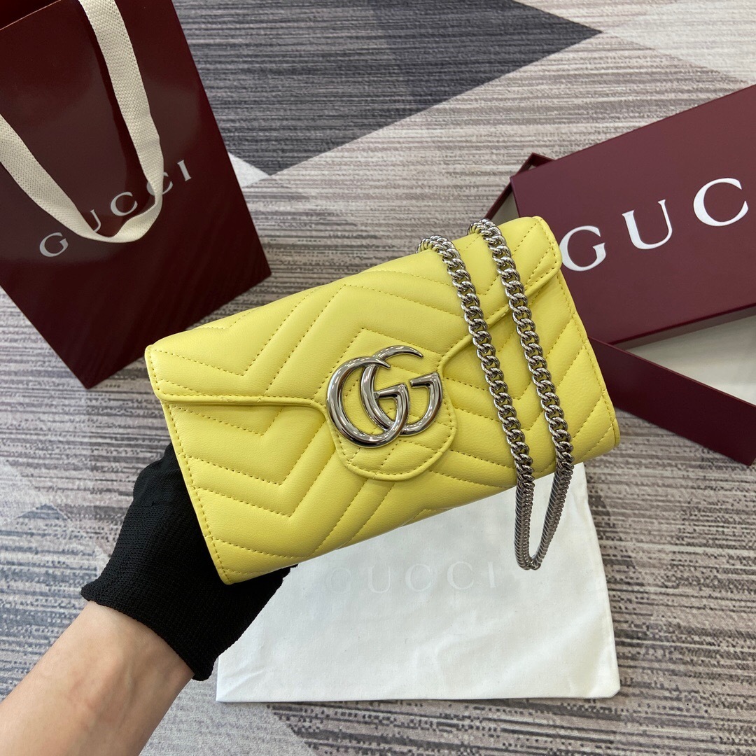 【配全套专柜包装】‼️这款GG Marmont系列链式钱包以绗缝牛皮革匠心打造。该系列标志性双G配件令整个设计愈发丰满。