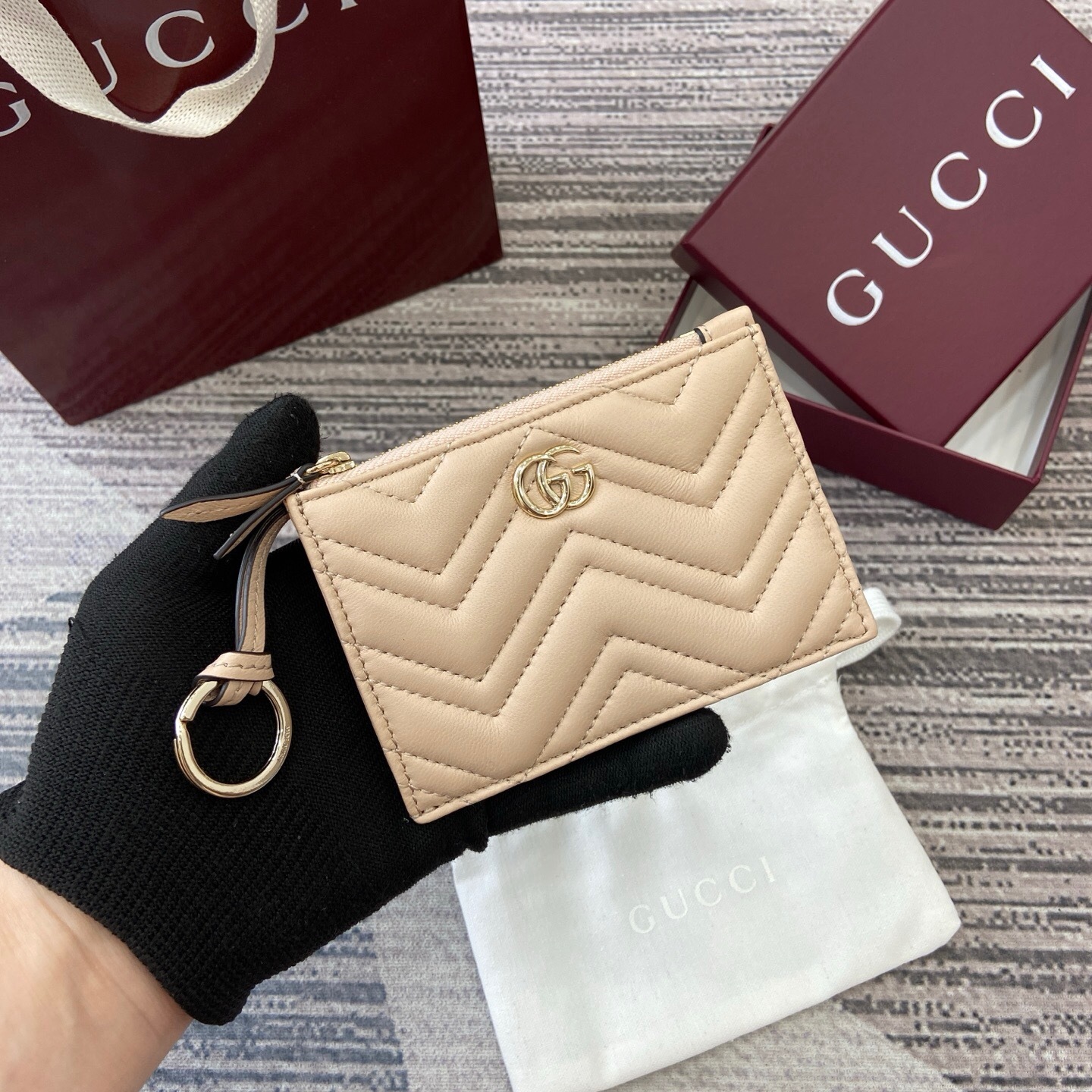 【配全套专柜包装】‼️这款GG Marmont系列钥匙包以V型Matelassé牛皮革打造,内部配有一个钥匙钩扣。纤长的线条结合该系列的标志性双G造型配件,令人一眼心动。