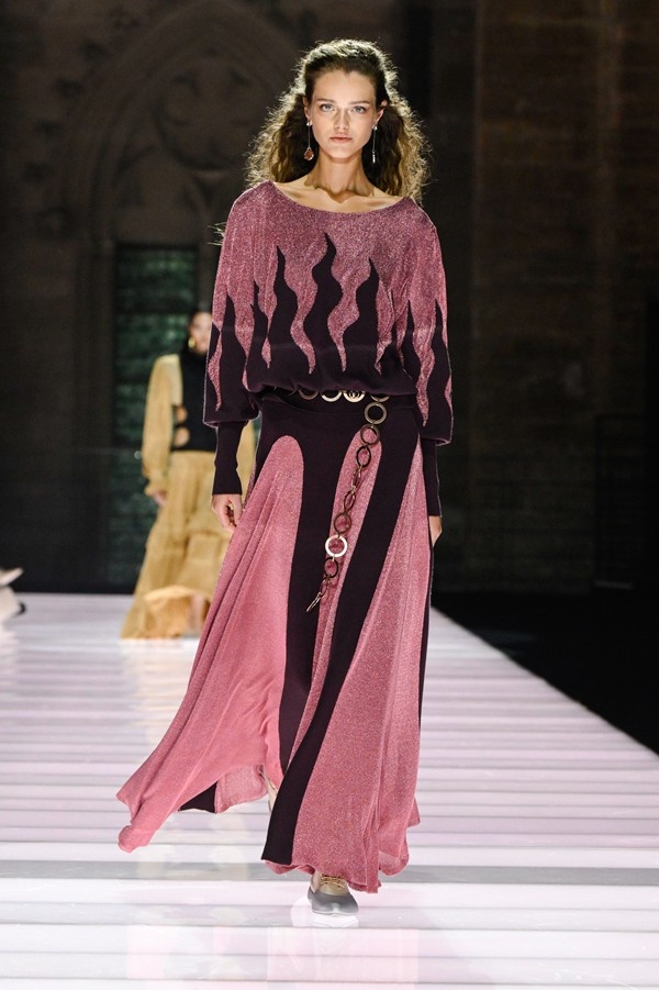 The garments presented exhibited a lavish and spirited character, managing to be flamboyant without appearing overly costume-like. Medieval influences were discernible in elements such as tunics and capes, alongside softer silhouettes reminiscent of historical figures, crafted from materials like metallic jersey. The collection aimed to offer a form of “armor for everyday life” for women, according to statements from the designer.