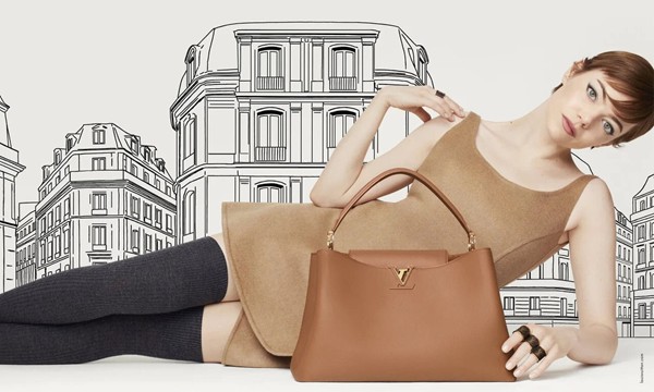 Green frames the campaign in a world of structured serenity. Set against backdrops of Haussmannian sketches, the imagery transforms architectural discipline into emotional resonance. Stone, poised and introspective, carries the Capucines in warm cognac leather, her gestures as deliberate as the bag’s contours. The Capucines’ clean geometry and refined hardware echo the brand’s modernist precision—more about restraint than ornament. In contrast, Hoyeon moves with a sculptural intensity. Whether holding the Side Trunk in taupe grained leather and Monogram canvas or the Capucines GM in navy, her energy brings movement to form. Green’s eye, attuned to texture and rhythm, translates fabric, leather, and light into an architectural harmony that feels simultaneously intimate and monumental.